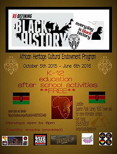 The AHCE Program is an alternative afterschool program that teaches OUR children African Heritage culture, history and traditions. Open to all youth k-12, home school, and alternative education participants. The program is recognized by the Superior Public School district and approved as an extension of history and social studies components.